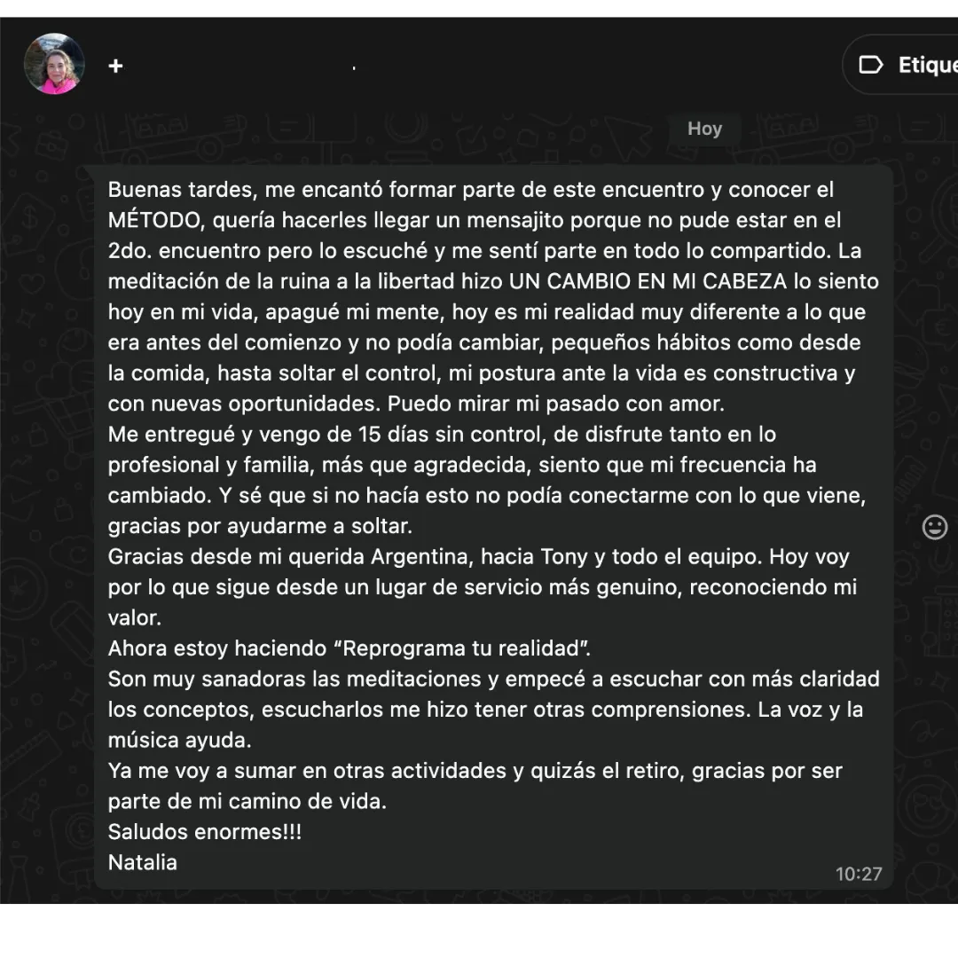 Si en 7 días sientes que no es para ti, me escribes y te devuelvo el 100%.